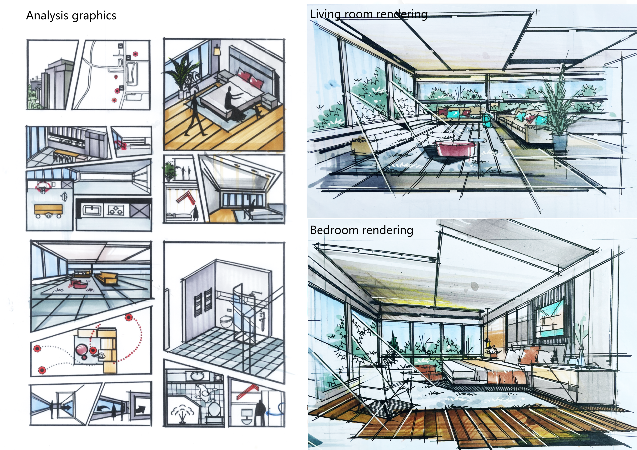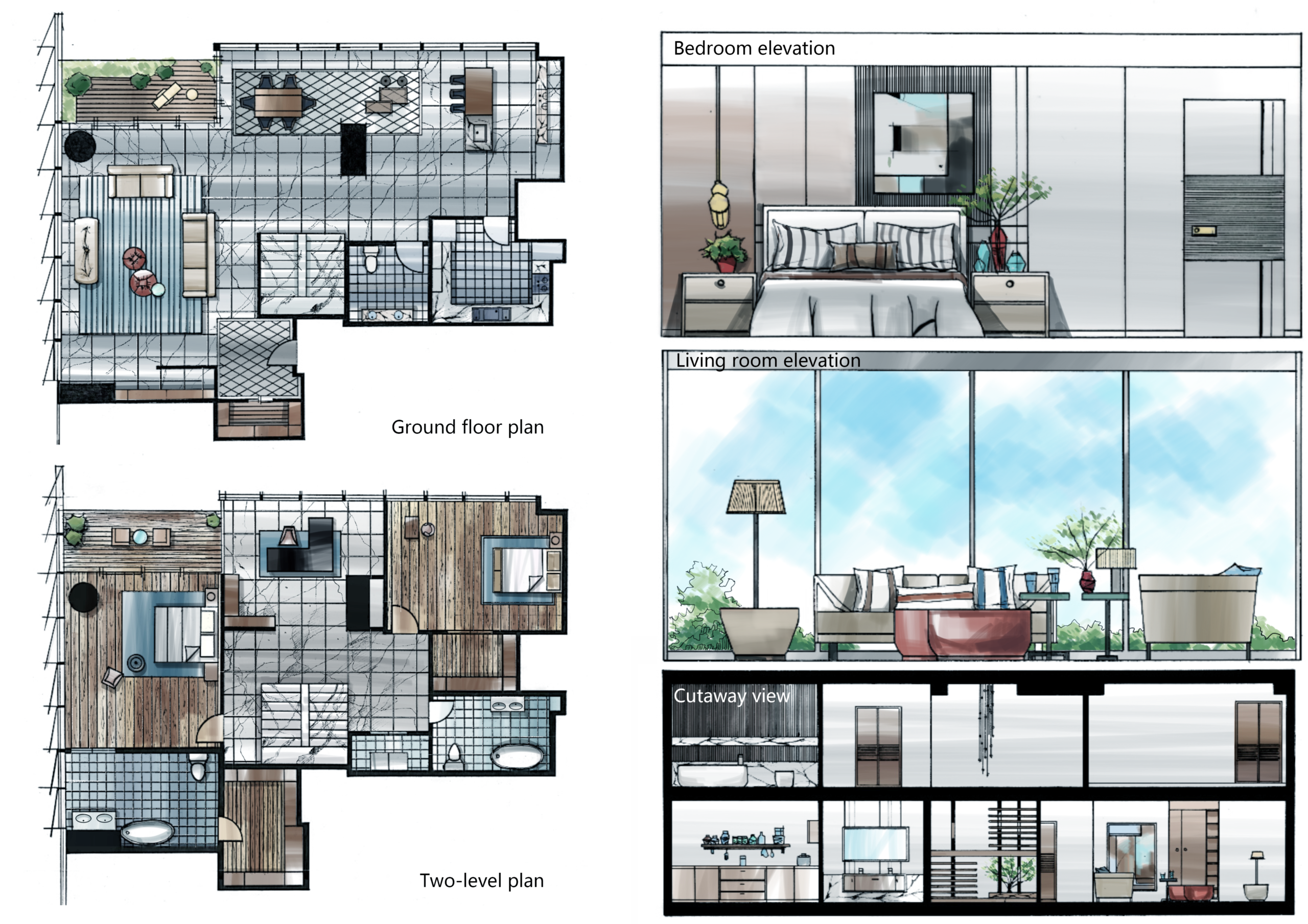 This loft project for Graydon Buckhead Apartments is a thoughtfully curated space designed for aninternational couple-one from the United States, a photographer, and the other from China, a fashiondesigner. The design harmonizes their professional needs, cultural backgrounds, and lifestyles,creating a unique and functional living space that celebrates their individuality and shared life.To address the distinct needs of both residents, the layout includes an enclosed kitchen,accommodating the robust flavors and cooking techniques of Chinese cuisine while maintaining anopen and fresh atmosphere throughout the apartment. The loft also features designated workspacesand entertainment areas, reflecting the couple’s creative professions and providing an inspiringenvironment where they can work, relax, and socialize.